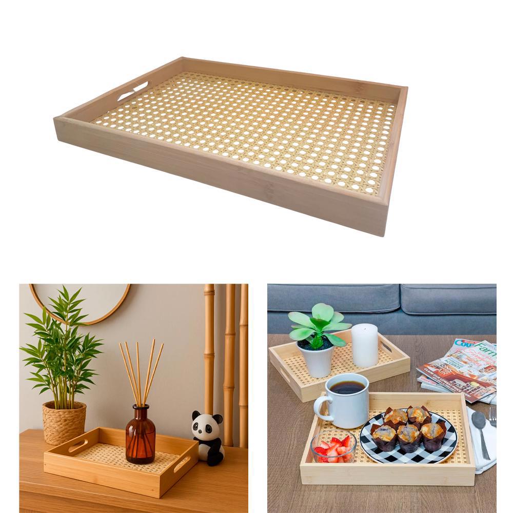 Bandeja Bambu Treliça 40 x 28 x 3,5 cm Decorativa Multiuso