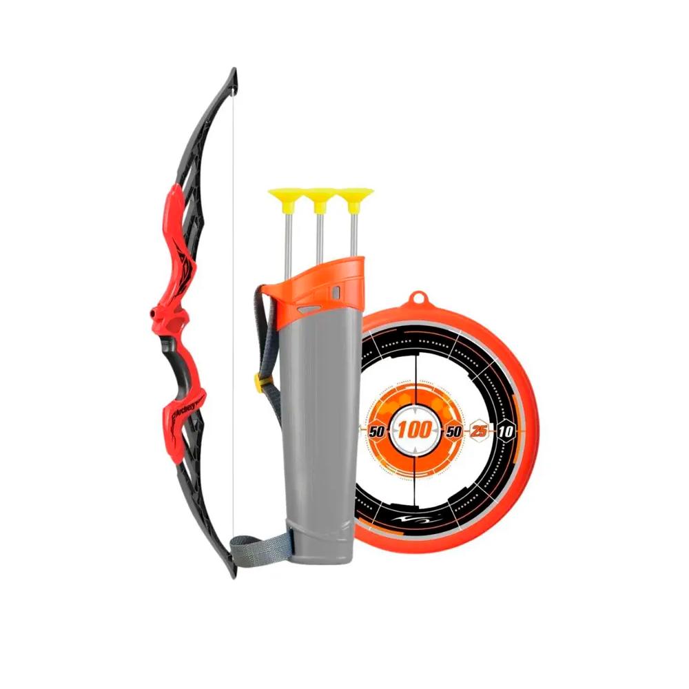 Com 63 cm de comprimento, o arco oferece boa estabilidade e alcance para tiros de precisão, enquanto as flechas de 104,1 cm permitem que a criança desenvolva habilidade, foco e controle motor. O alvo acompanha marcações que ajudam a criar desafios e jogos de pontuação, tornando a atividade ainda mais envolvente.