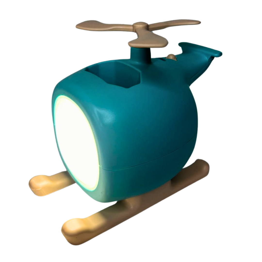 Decore e ilumine o ambiente com a charmosa Mini Luminária de Mesa em formato de Helicóptero! Com um design criativo e moderno, esta luminária de LED é perfeita para trazer um toque de diversão e estilo a qualquer espaço. Compacta, com dimensões de 8x12x10,5 cm, ela é feita de policarbonato (PC), um material resistente e durável, ideal para decorar mesas de estudo, estantes ou cabeceiras.